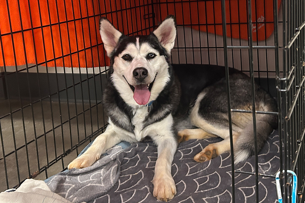 Sage is a social butterfly with other dogs and loves a good game of chase, especially when she’s the one doing the chasing! She’s happiest with dog pals who share her playful vibe. With people, she warms up quickly and leans in for all the pets. She’s a champion snuggler and loves silly playtime!