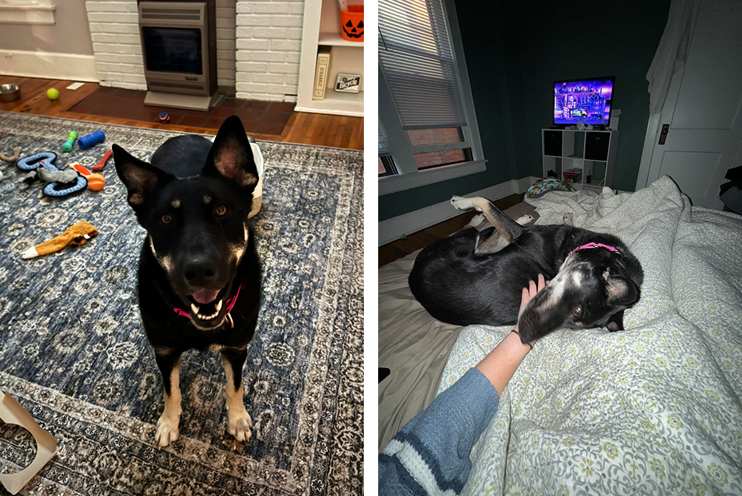 On a typical day, Bella loves hiking, outdoor adventures and long walks, but she also enjoys a balance of playtime and relaxation. She has great leash manners and has even enjoyed trips to the park. She’s always up for a game of fetch or jumping into the pool, and after, she’s happy to cuddle up with her people.