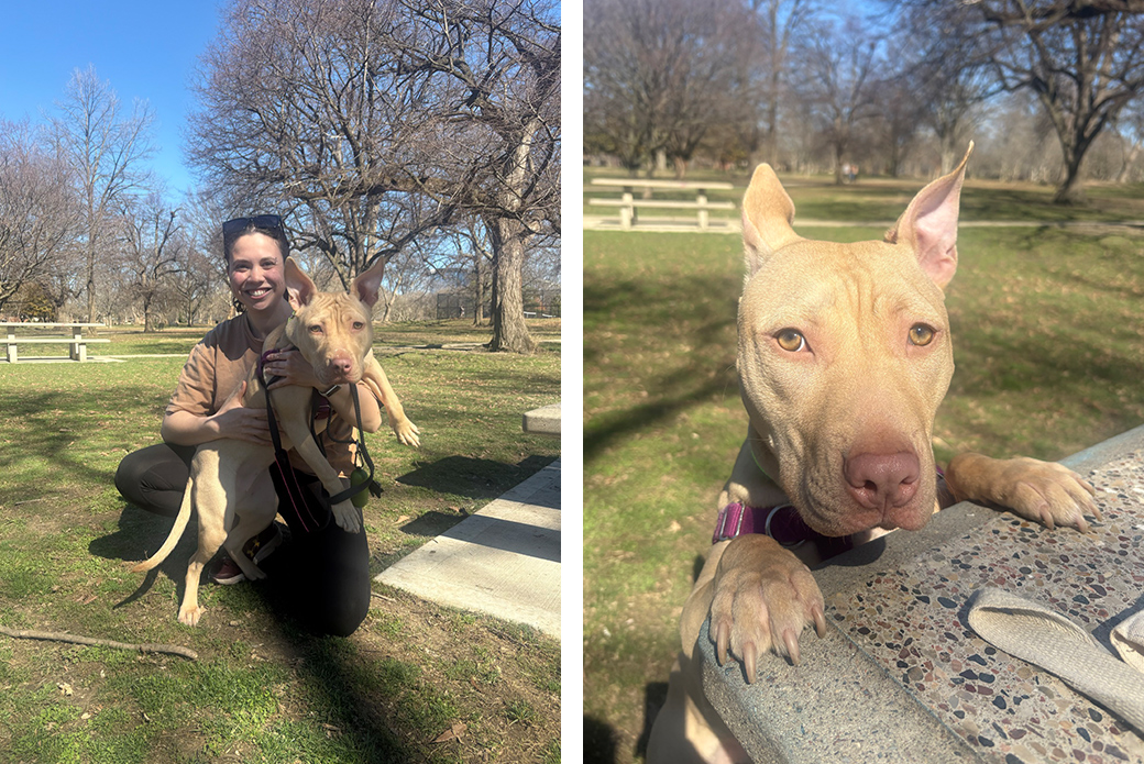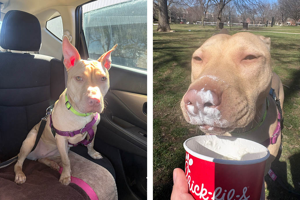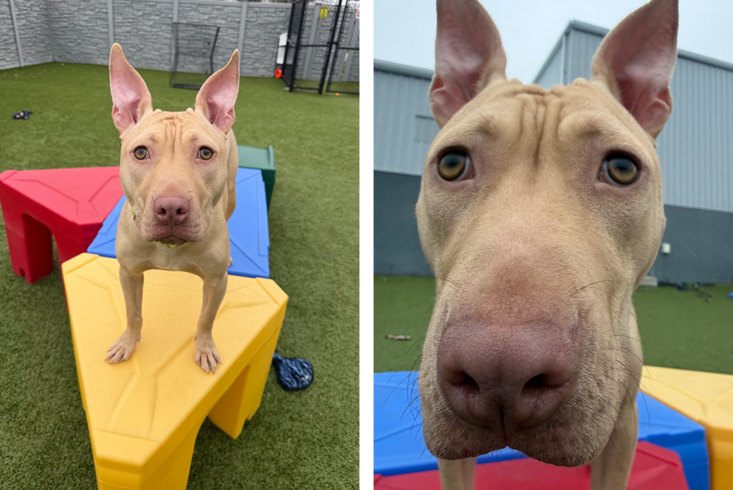 Meet Bing! She is the cutest, little golden piglet with the silliest personality to match. This tiny pittie has quickly become a true staff favorite, and it’s easy to see why. With her goofy charm, happy energy and sweet nature, Bing brings smiles everywhere she goes.