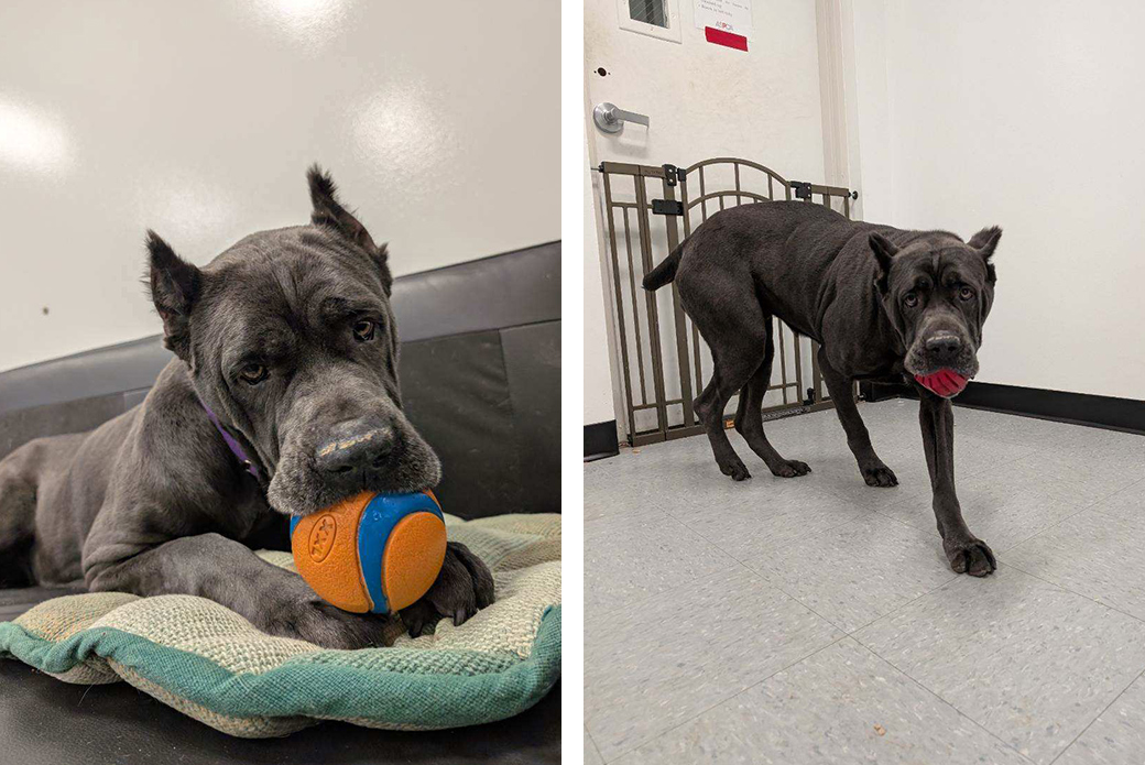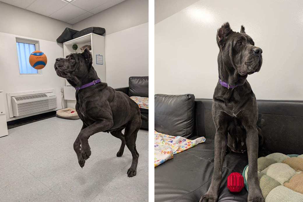 Eve walks nicely on leash and loves playtime, especially fetch and ball games. Smart and eager to learn, she would thrive with an adopter who enjoys training, enrichment and having lots of fun together!