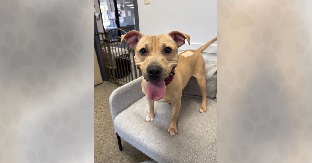 Meet Gucci, a 3-year-old, tan-and-white pittie girl who is equally silly, social and snuggly once she knows you! She loves carrying toys around like prized possessions and will happily parade them from room to room. If there are multiple toys out, she’ll take her time picking just the right one, like it’s an important decision every time.