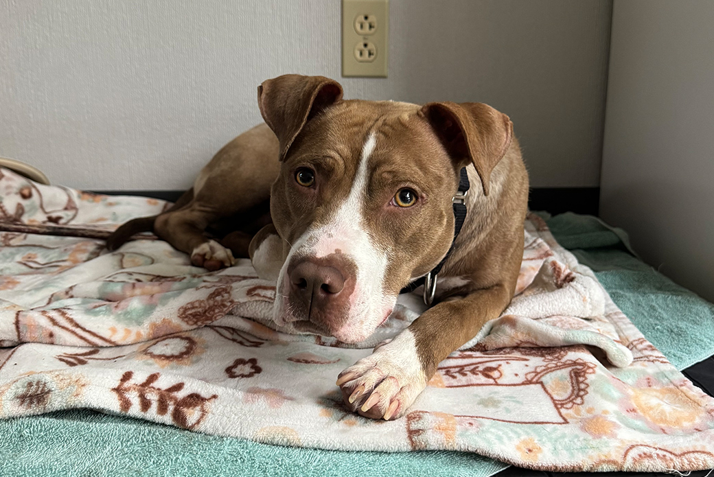 Meet Kitty! This 2-year-old, brown-and-white sweetheart has the cutest petite build and an even sweeter personality. Kitty came to the CRC through a suspected cruelty case and likely hadn’t experienced much of real home life before coming to us. She has been learning and growing more confident every day!