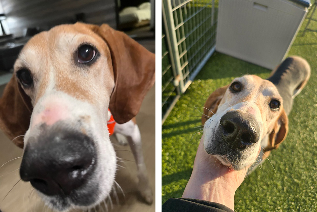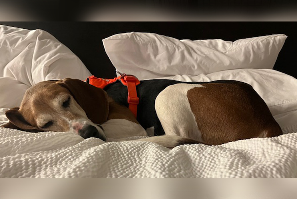 Prudence recently had a sleepover with a volunteer, and she did so well! She hopped into the car, rode politely, snoozed on the bed during Zoom calls, didn’t fuss or react to city noises. She just curled up, cuddled and lived her best little senior-lady life! Prudence would thrive in a calm, howl-friendly home where she can enjoy cozy evenings, gentle walks and all the affection she can soak up.