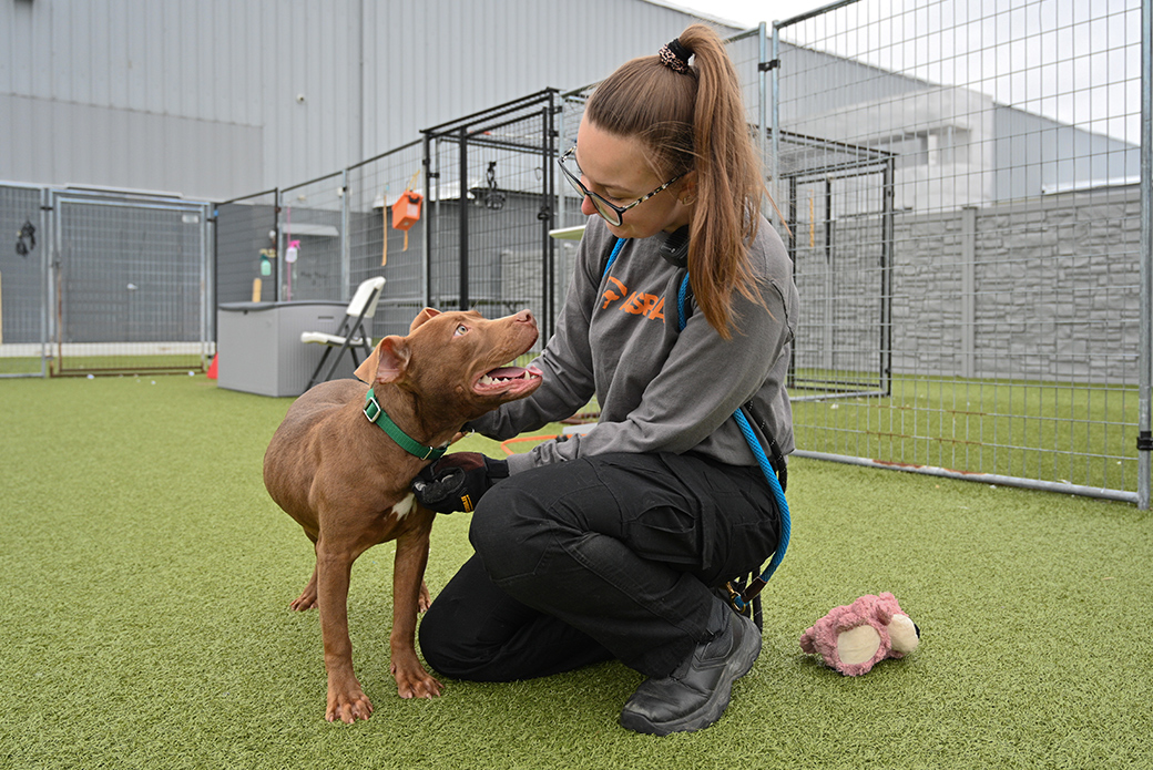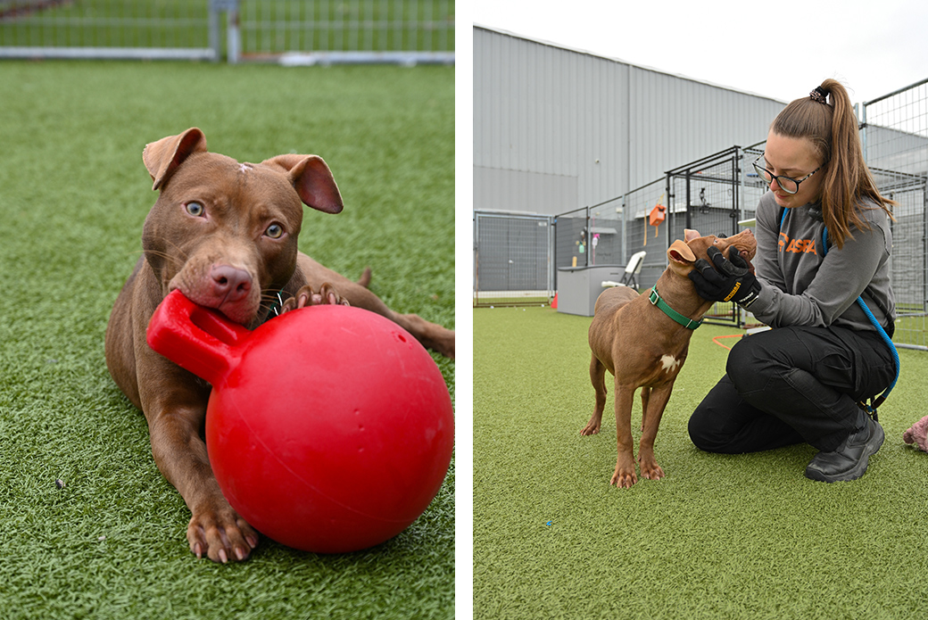 Toast is a true social butterfly and a superstar in our doggy playgroups, with many successful play sessions under his belt. He loves a good romp and playful wrestling match. He has also been a wonderful helper dog, helping more fearful dogs build confidence and teaching puppies appropriate play manners like the little gentleman he is.