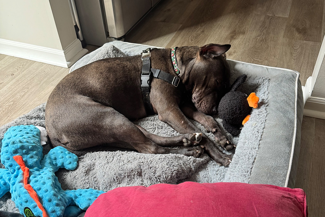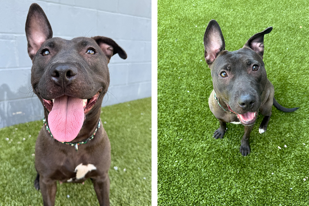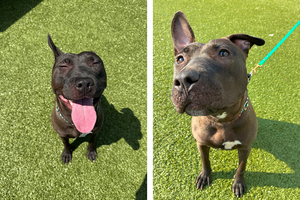Truffle was rescued from a suspected cruelty case earlier this year, and while she’s made incredible progress, she can still feel a little unsure in busy or high-stimulus environments. New sights and sounds sometimes make her pause, but with gentle reassurance, she bounces back quickly and shows off her goofy, affectionate self. She’s looking for an adopter who will be patient, kind and willing to give her the time and space she needs to feel safe. In return, she’ll give you endless sweetness and love.